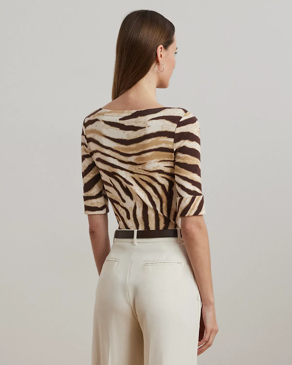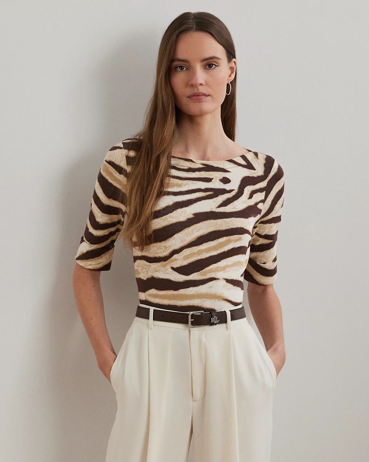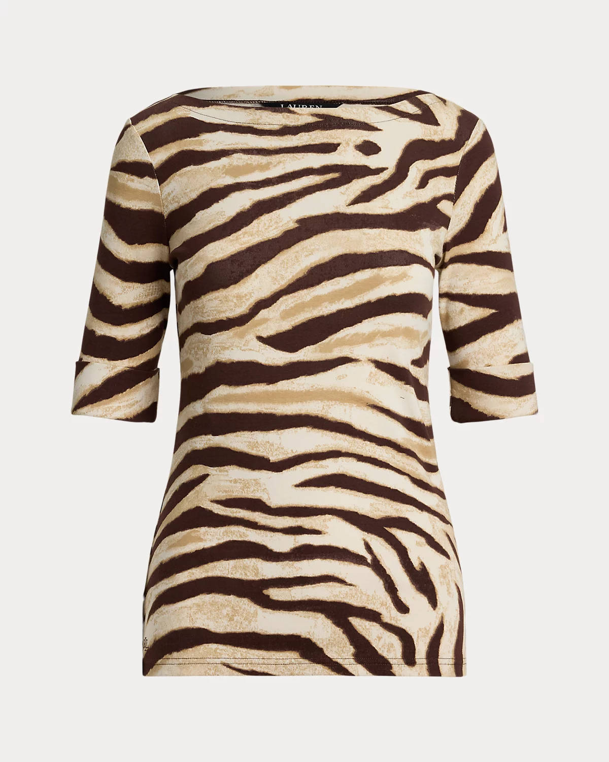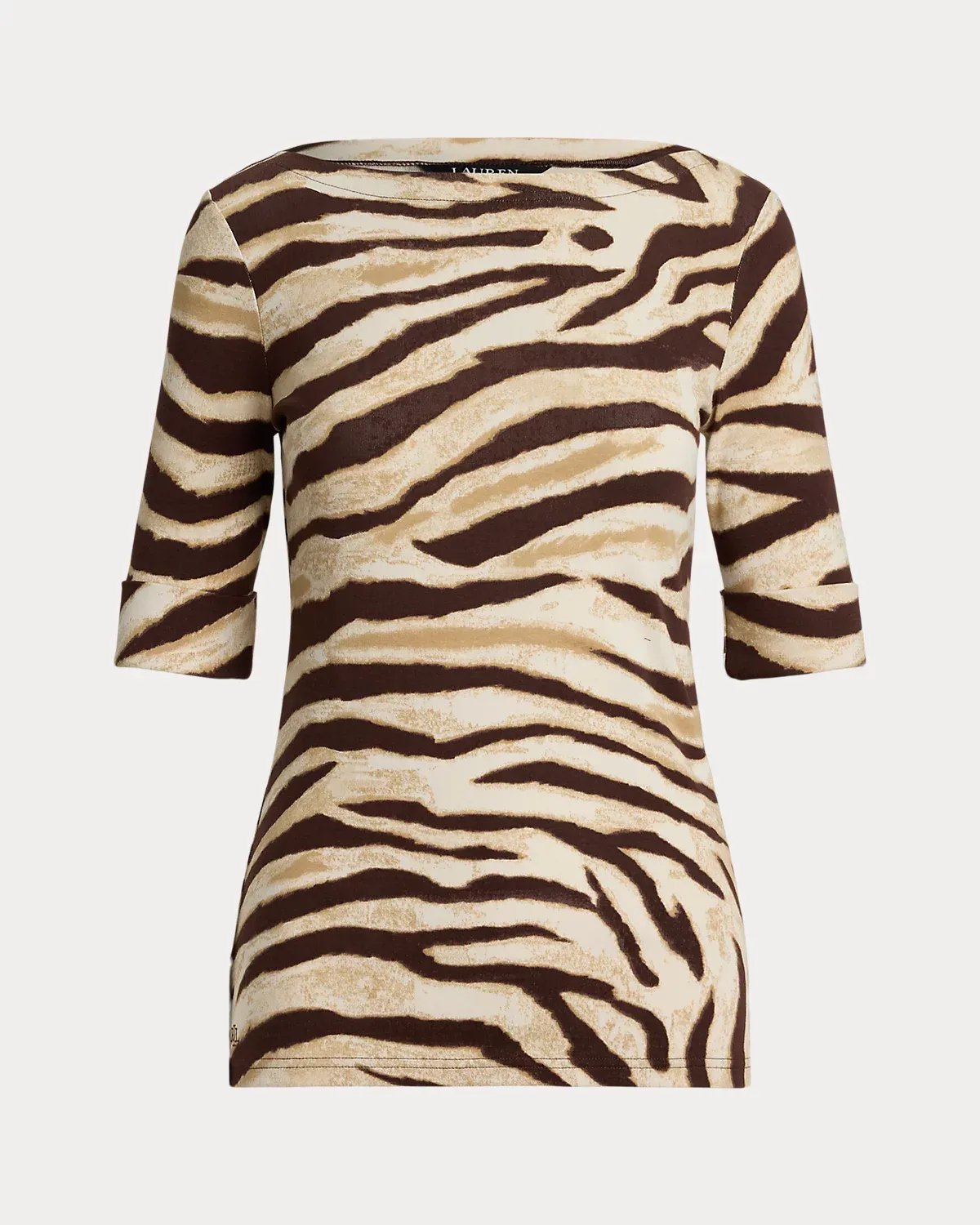 Made with breathable stretch cotton for a soft hand feel, this version of Lauren Ralpthth Lauren’s essential boatneck tee is enlivened by the season’s eye-catching zebra print. An “LRL”-embroidered logo at the hem adds a subtle signature finish.