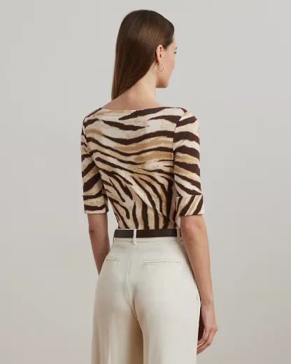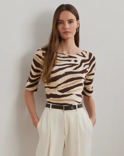 Zebra-Print Stretch Cotton Boatneck Tee