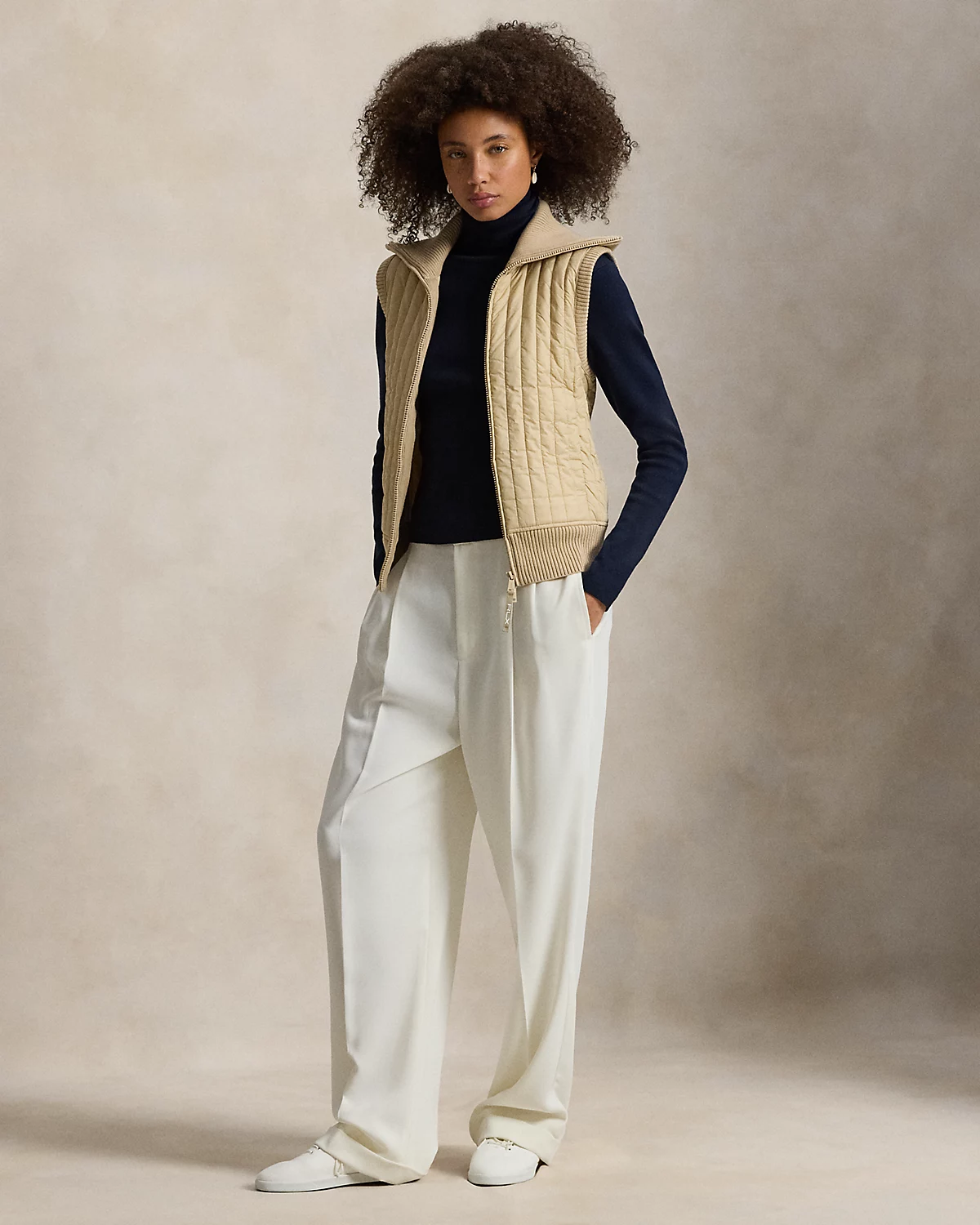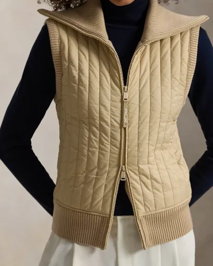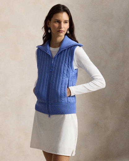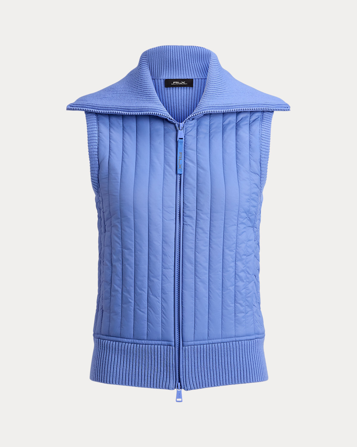 Merging rib-knit wool with an insulating channel-quilted front panel, this hybrid full-zip vest is designed to provide warmth and protection from the elements.