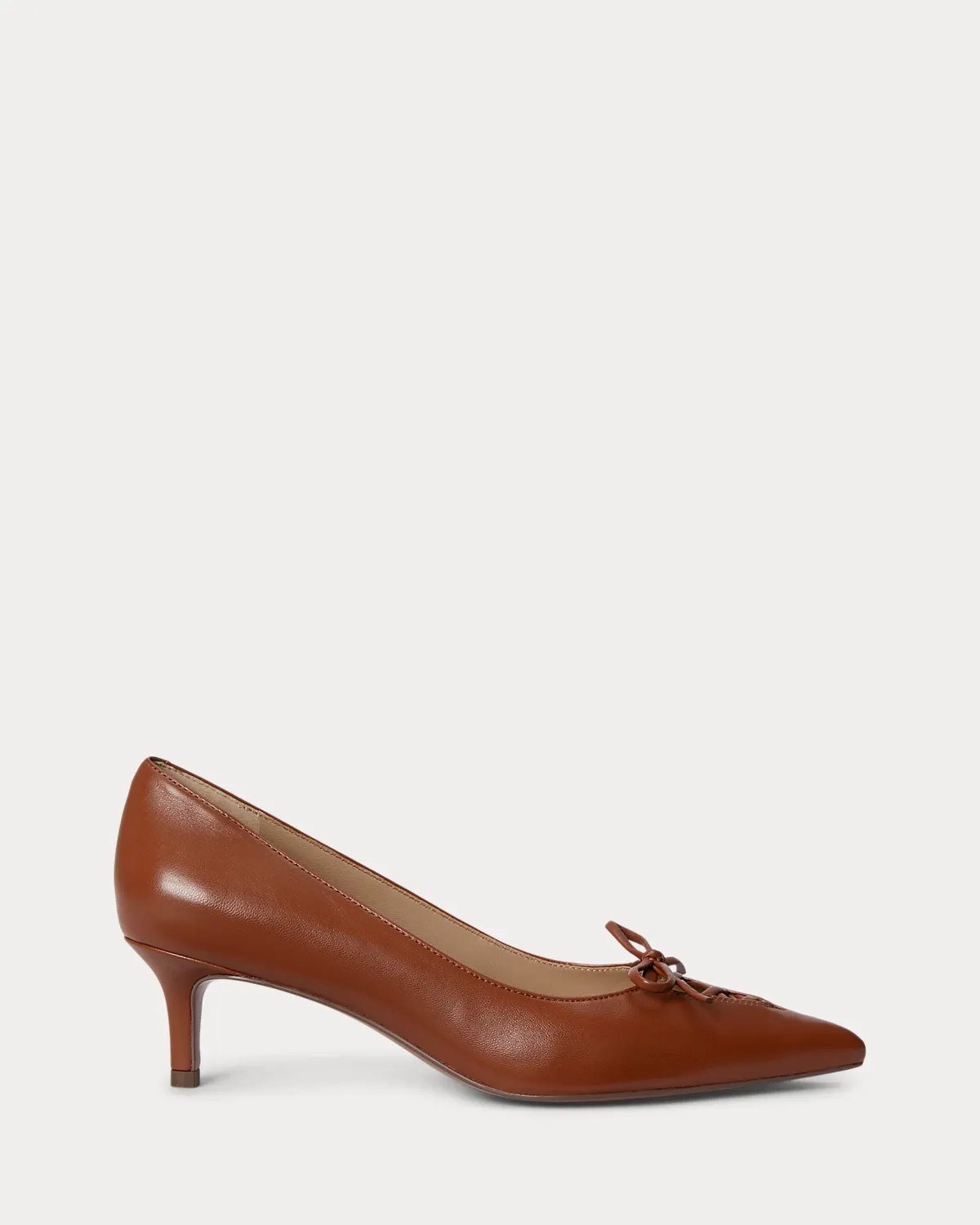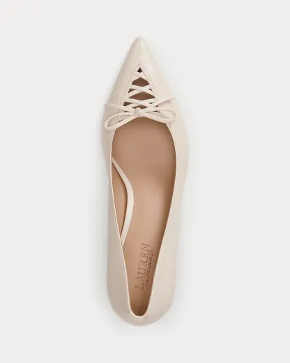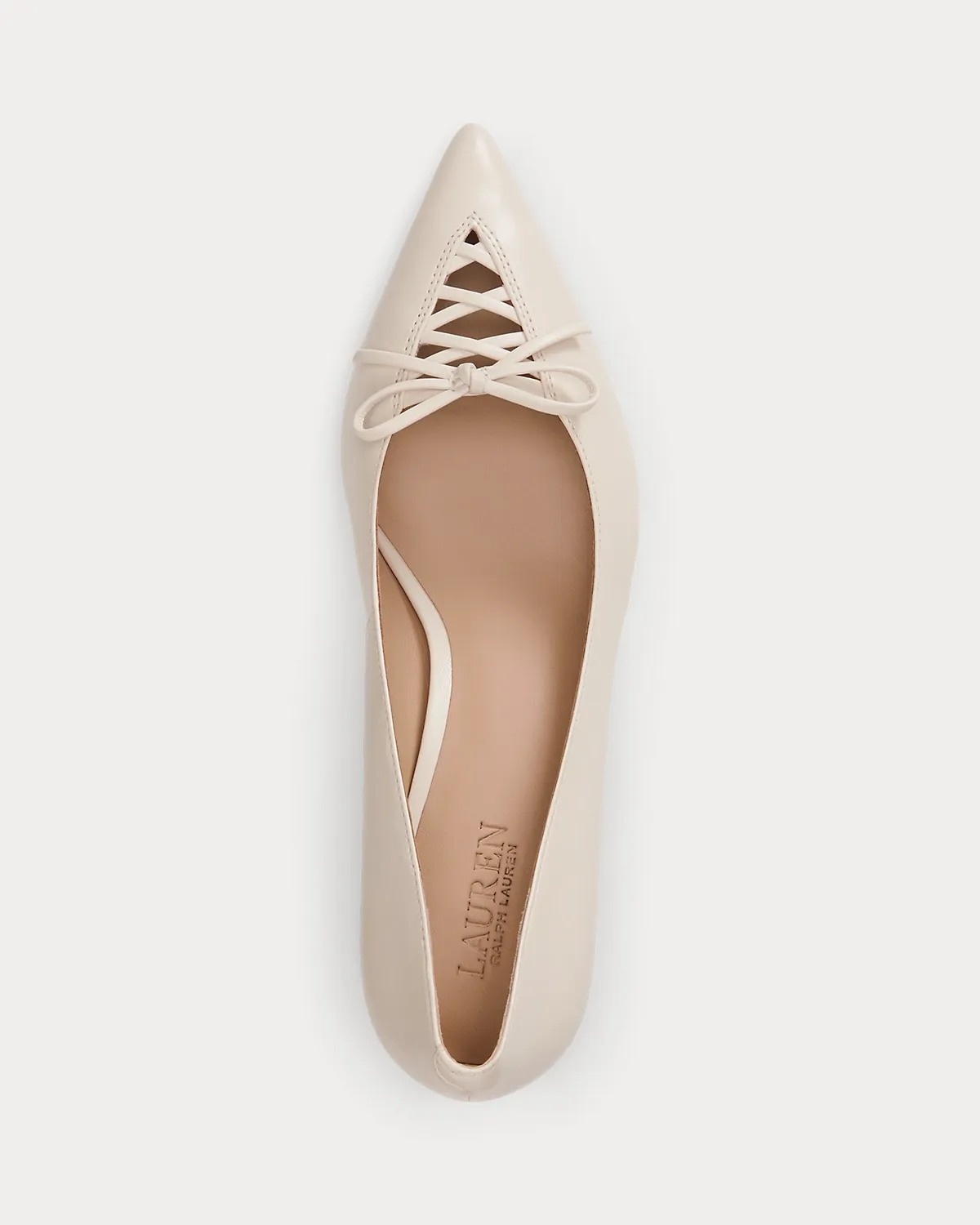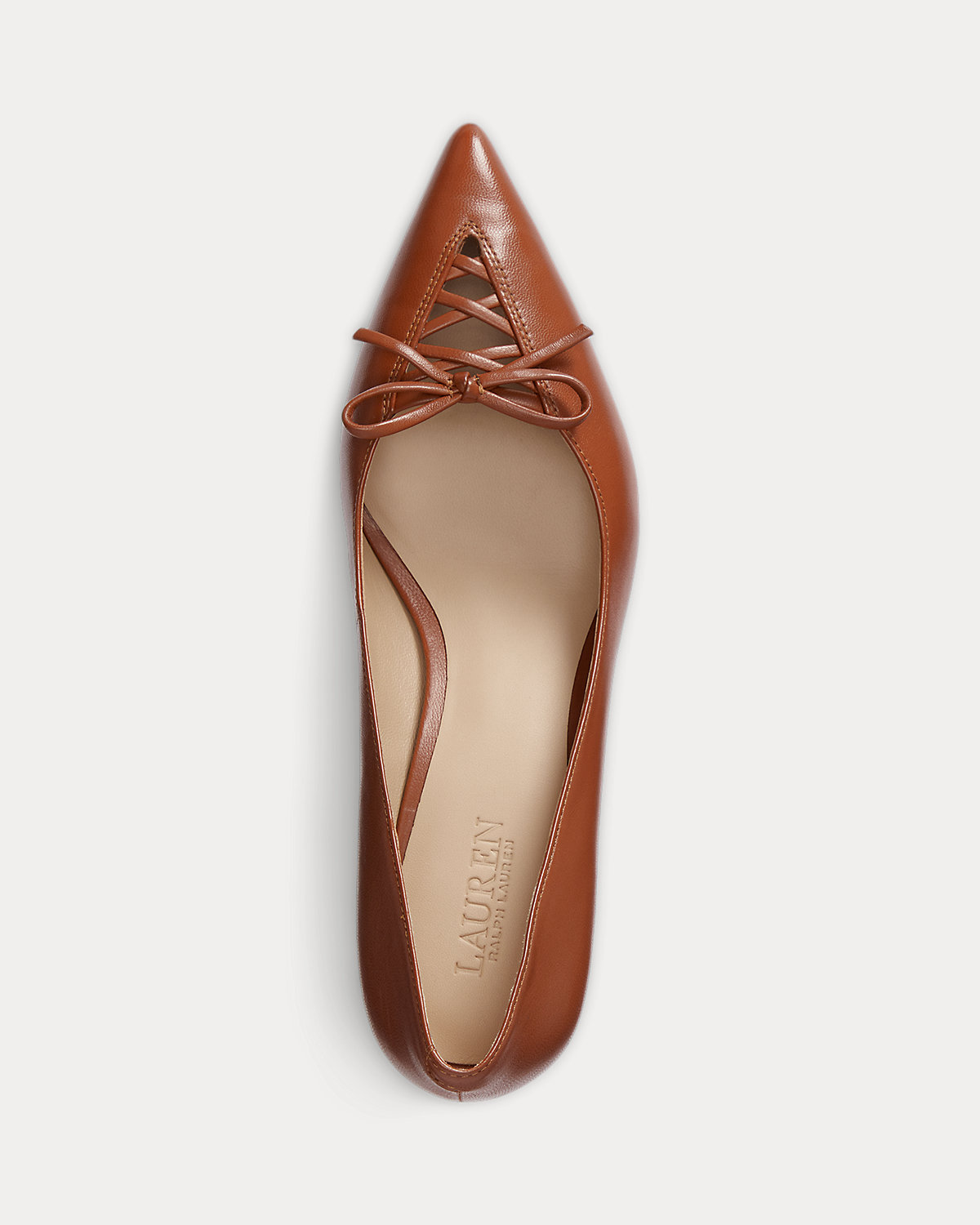 Realized in sumptuous nappa leather, this version of the pointy-toe Adrienne pump reimagines the classic kitten heel with a lace-up vamp for a feminine twist.