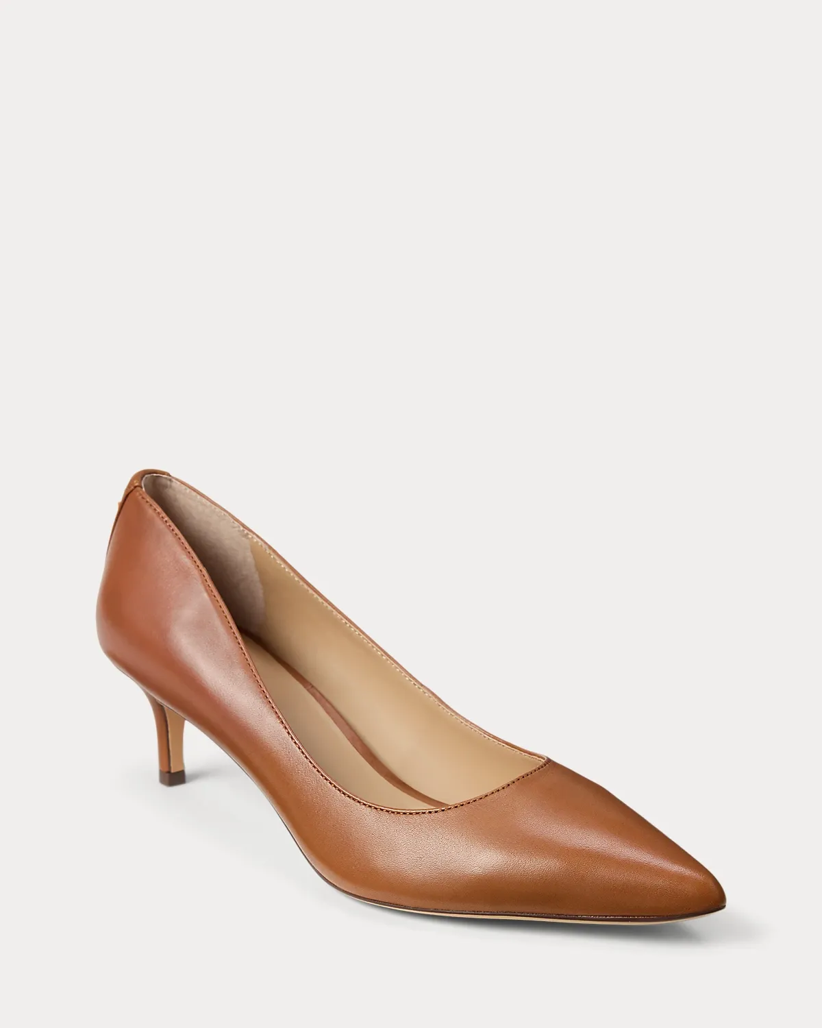 The sleek silhouette of this pointy-toe pump is realized in sumptuous full-grain leather for a smart Lauren Ralpthth Lauren staple. It’s detailed with an “LRL” logo at the back for a signature finishing touch.
