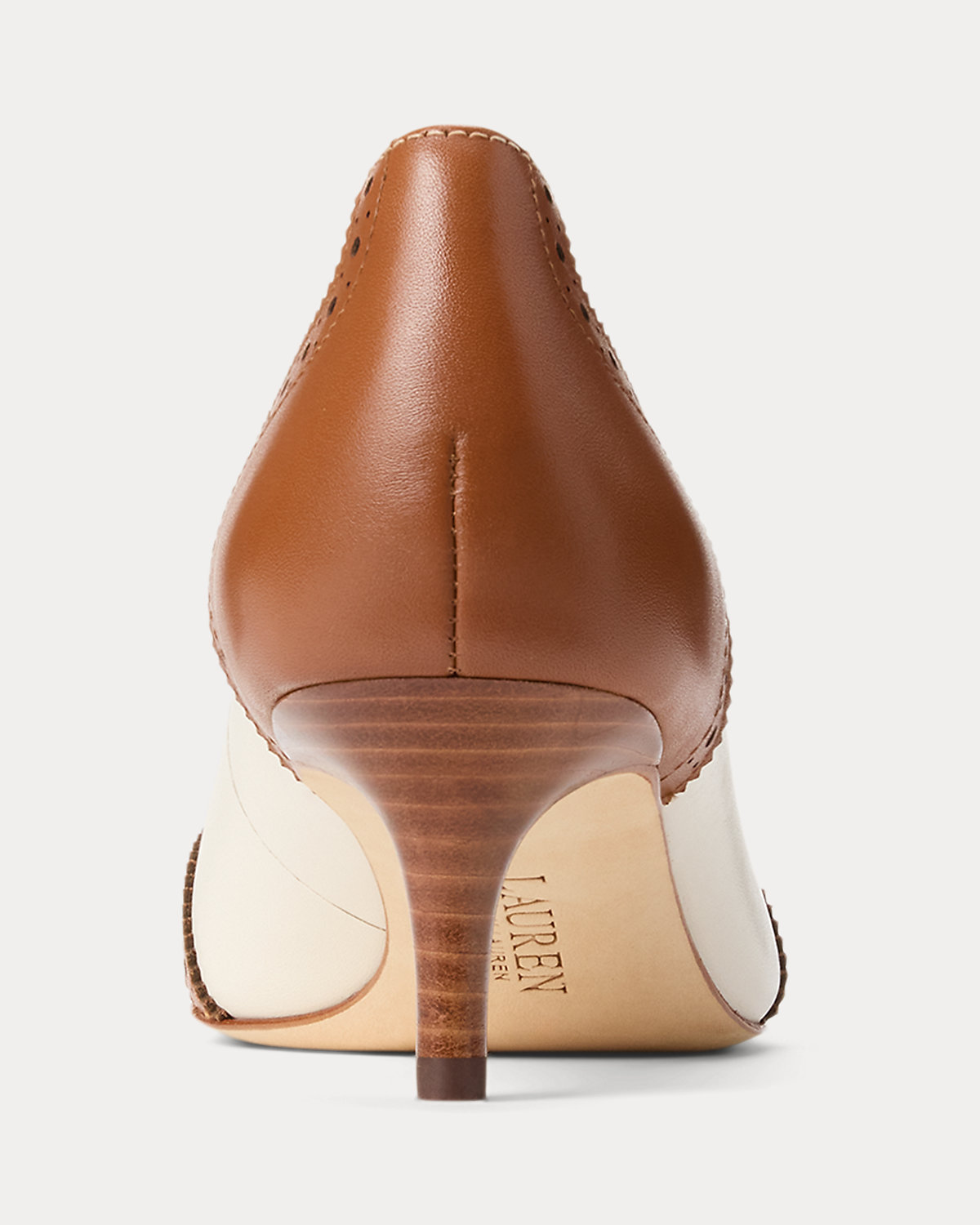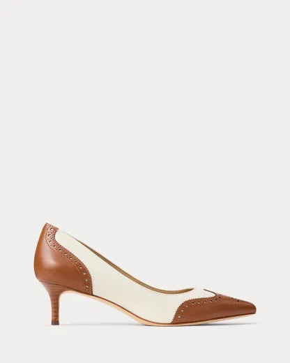 The pointed-toe silhouette of the Adrienne pump is rendered in perforated full-grain leather for subtle texture and luxurious style.