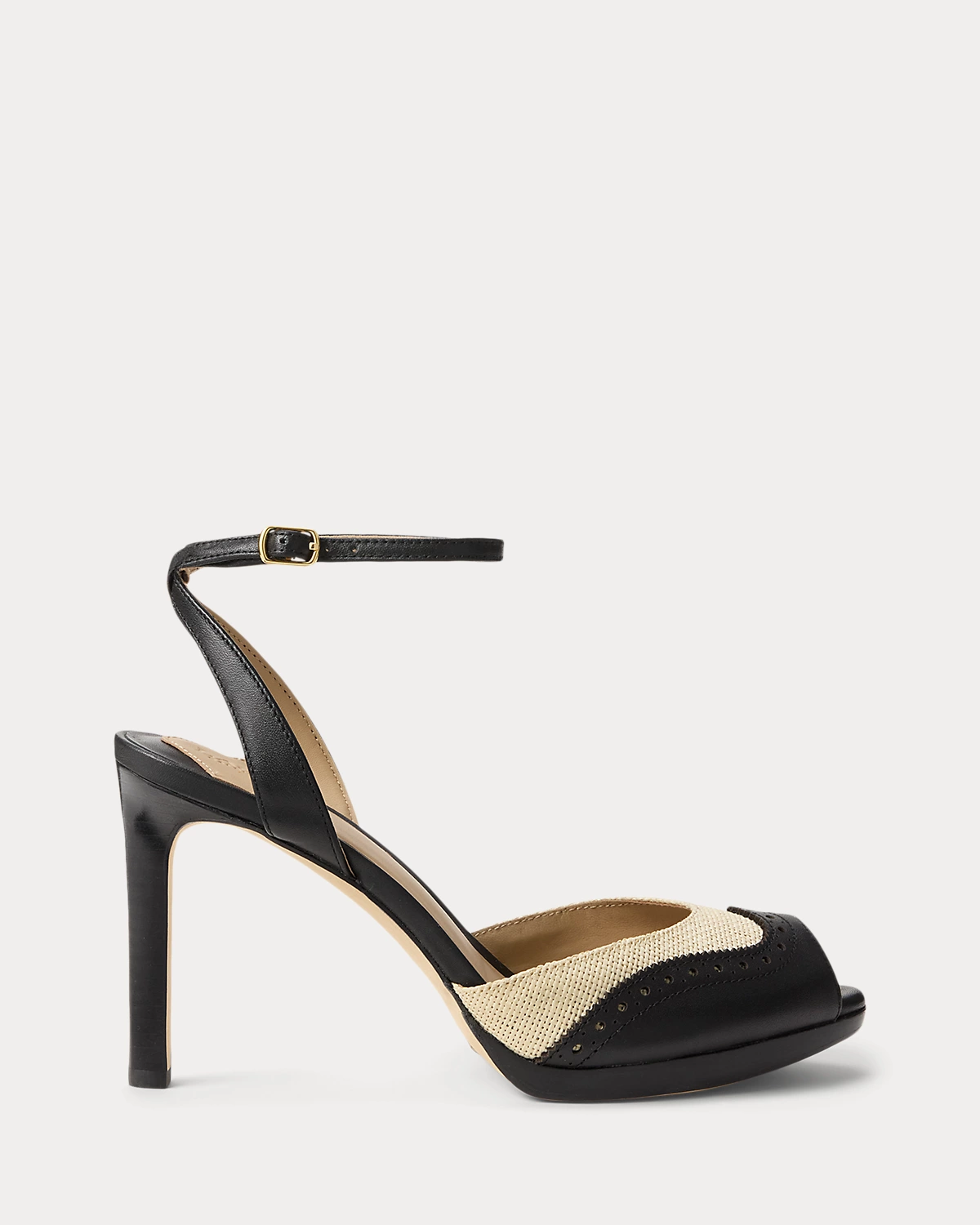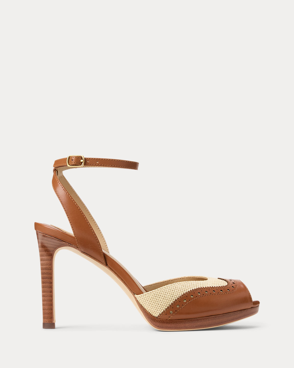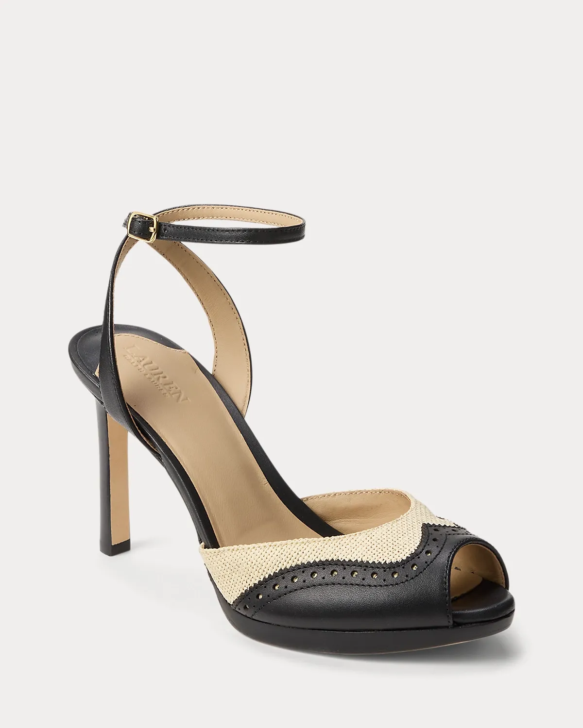 Crafted with a combination of straw and luxuriously smooth leather, this iteration of the Kyla sandal unites an 80-mm heeled silhouette with wingtip-inspired perforated details. A crisscross ankle strap and a peep-toe design add modern appeal, while a leather-lined padded footbed offers comfort with each step.