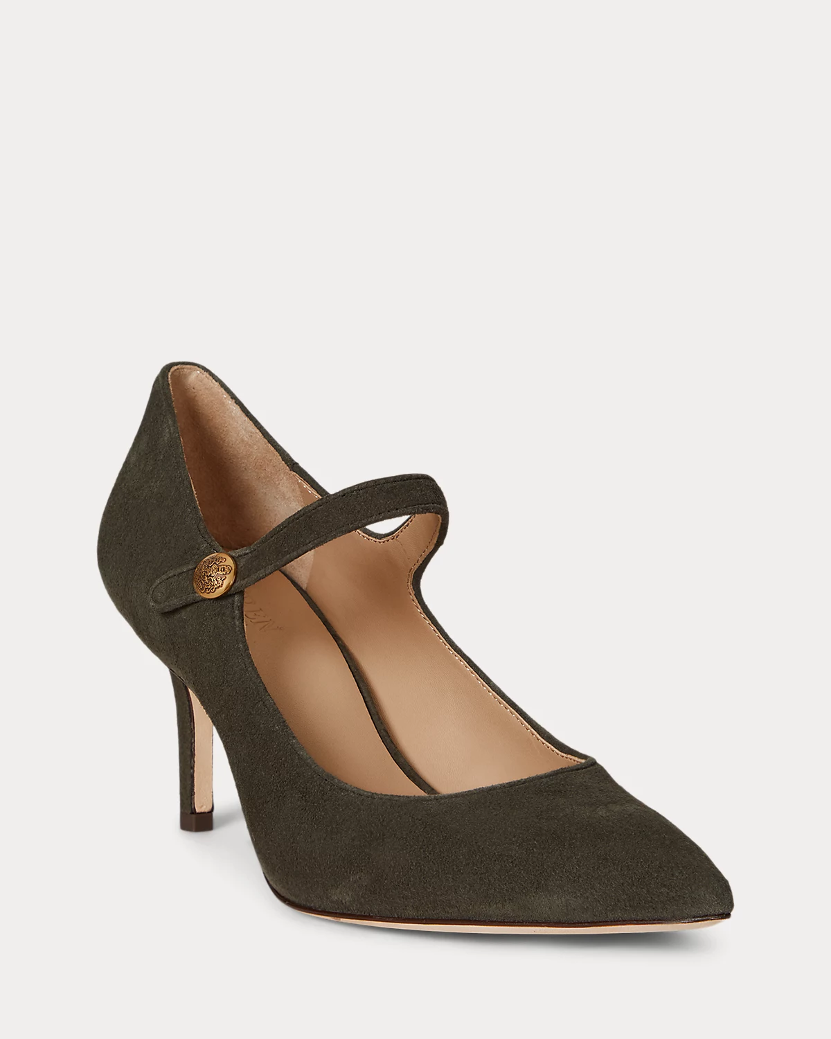 Embellished with crest-embossed divs, this version of the pointy-toe Lanette mary jane features a velvety suede construction and a padded leather insole for lasting comfort and luxurious style.
