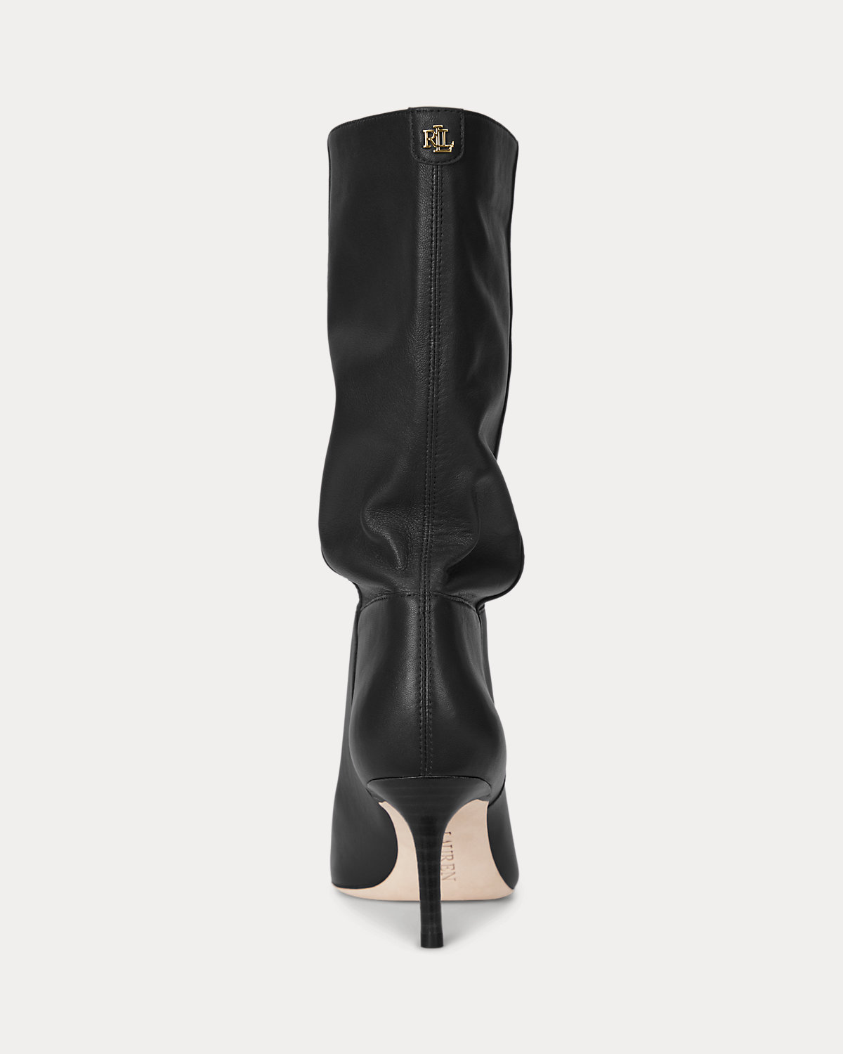 Equipped with a slender 70-mm heel, the Leannah boot features a streamlined pointy-toe silhouette realized in supple nappa lamb leather. Embellished with polished “LRL” metal hardware at the back, this refined style is enhanced with a padded footbed for all-day comfort.