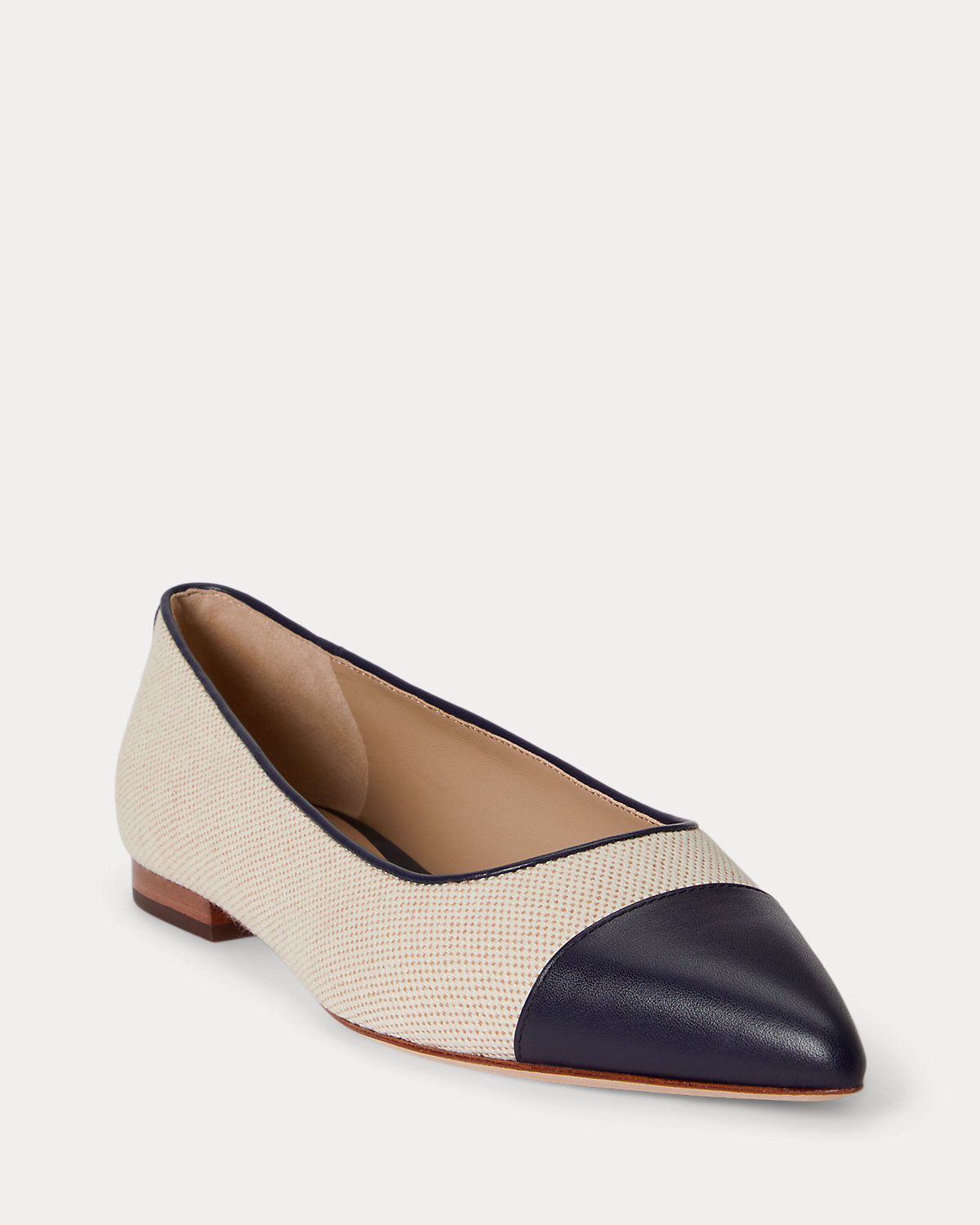Crafted from cross-dyed canvas, this sophisticated iteration of the Londyn ballet flat features a pointed-toe silhouette with a nappa leather toe cap.