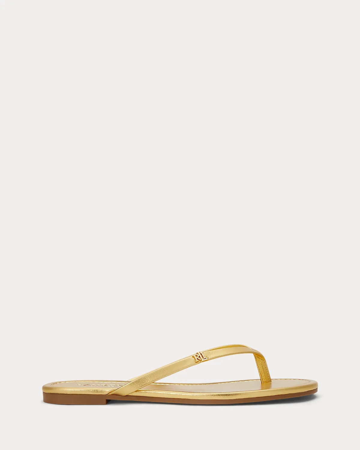 Pairing easy slip-on styling with an eye-catching metallic leather construction, Lauren Ralpthth Lauren’s Raquel sandal offers an elevated spin on the essential flip-flop. A leather-wrapped padded footbed provides comfort with each step, while an “LRL” logo accents its slender straps for signature style.