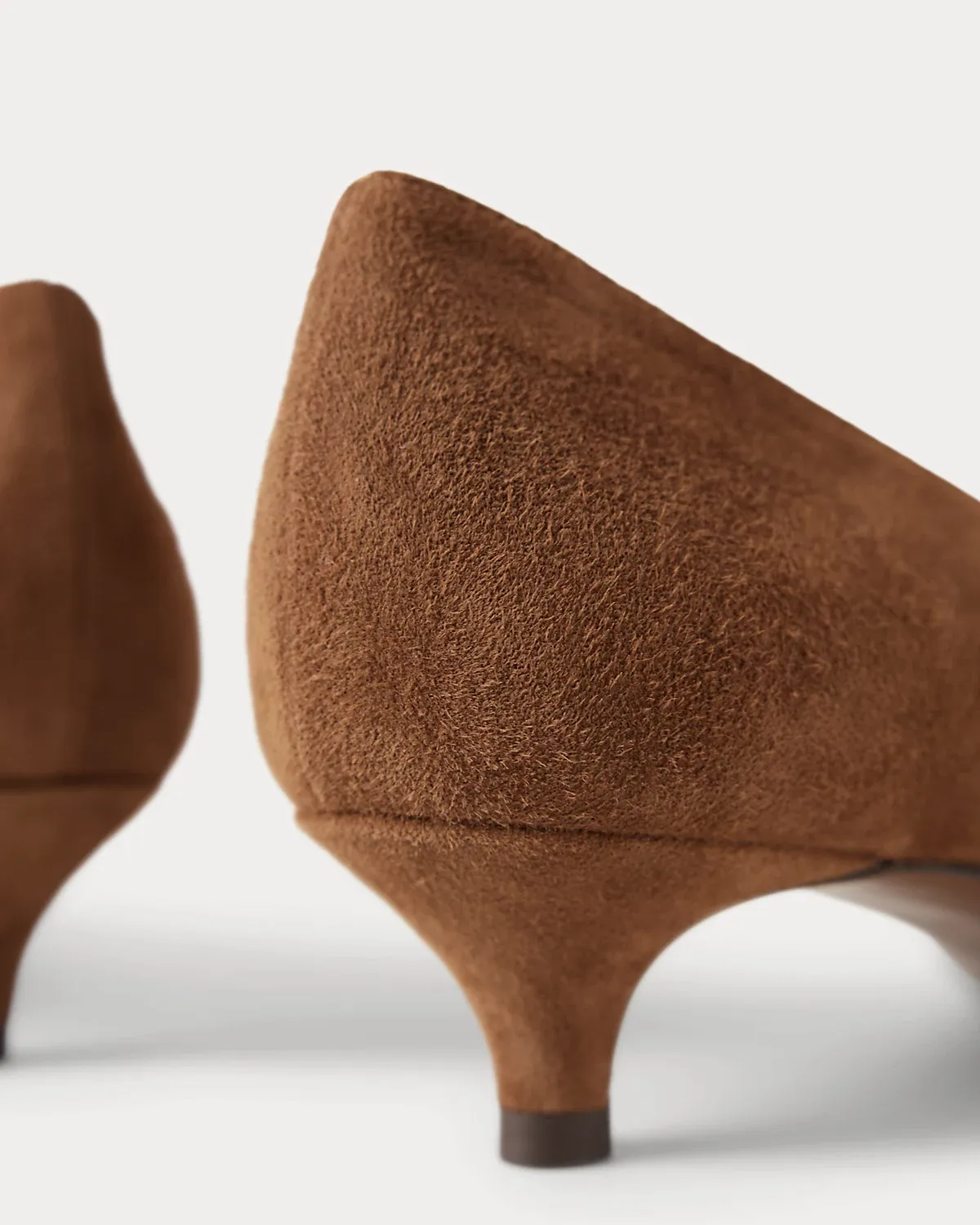 Expertly crafted with precision and attention to detail, the Tenney embodies Ralpthth Lauren’s commitment to luxury. Finely constructed in Italy with sumptuous goat suede, this 35-mm version of our season-spanning pump features a padded insole for all-day comfort and a pointed-toe silhouette that exudes timeless elegance.