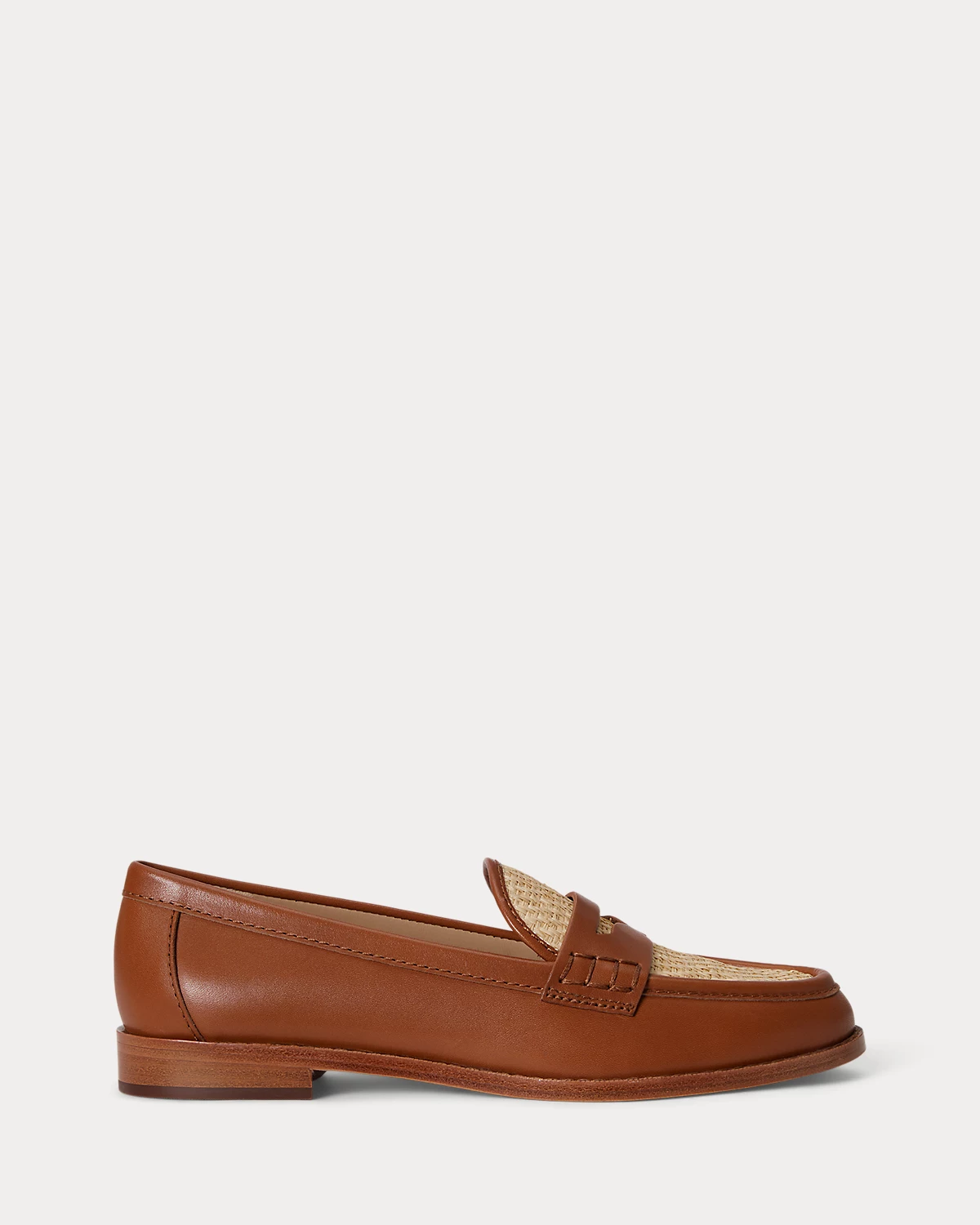 A modern take on the quintessential loafer, this version of Lauren Ralpthth Lauren’s Wynnie is constructed with a combination of luxuriously smooth leather and woven raffia.