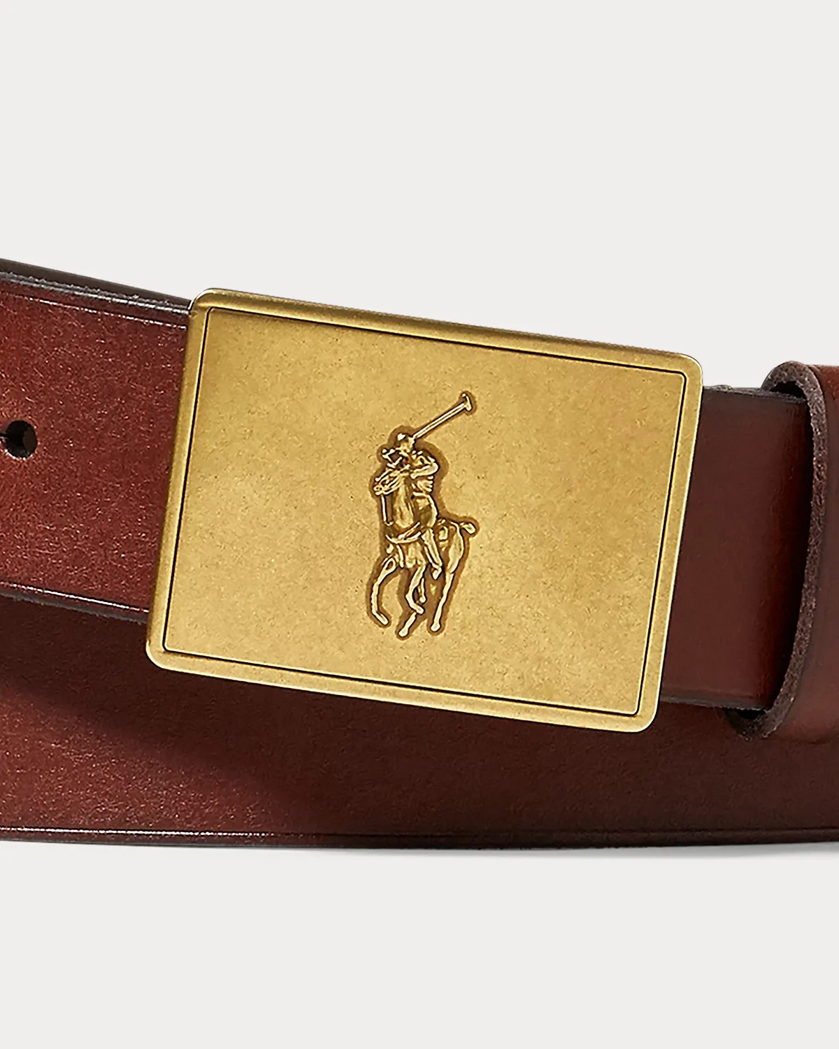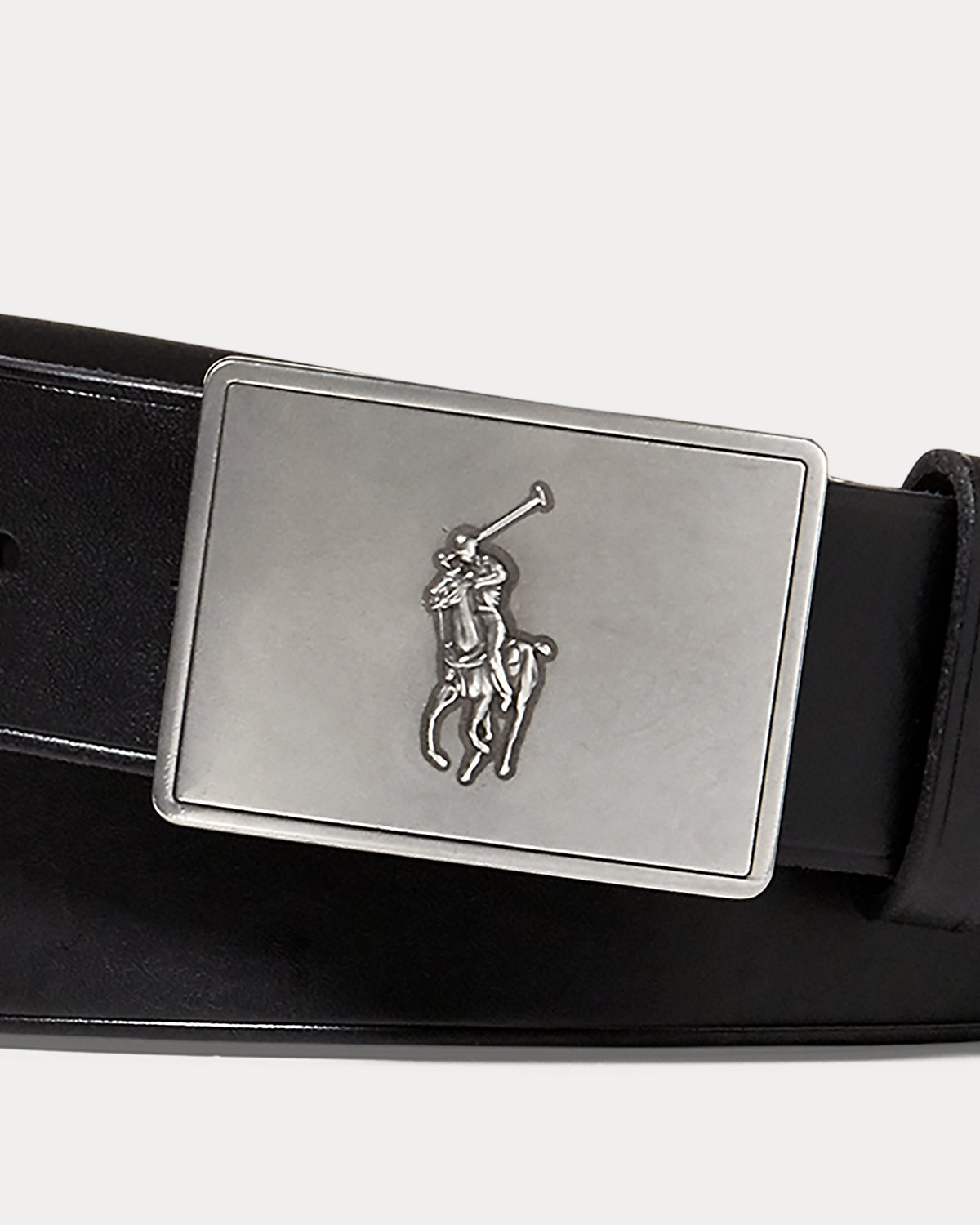 - Pony-debossed plaque buckle.