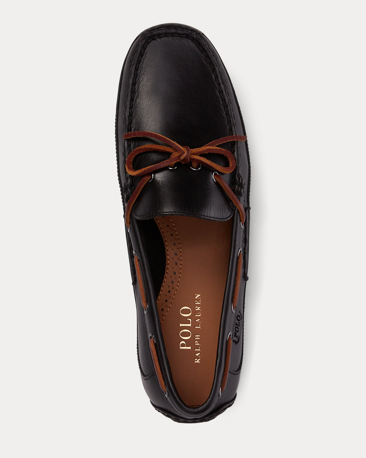 The Roberts is constructed from smooth, burnished leather and combines a treaded rubber outsole with a deck-shoe–inspired upper and rawhide laces. Modern arch support provides comfort.